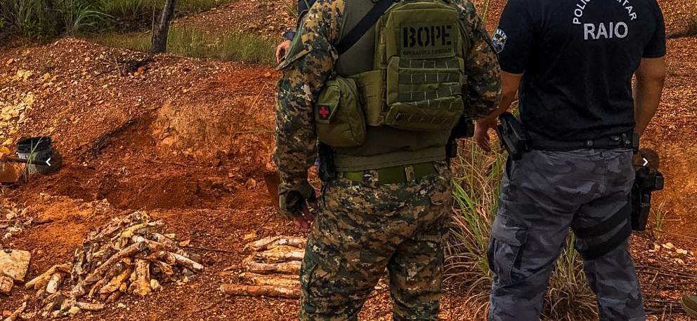 Policiais militares da equipe RAIO 03 do CR2 foram acionados após a localização de explosivos enterrados, expostos por um deslizamento de terra, durante manutenção com máquina pesada em Várzea Grande.