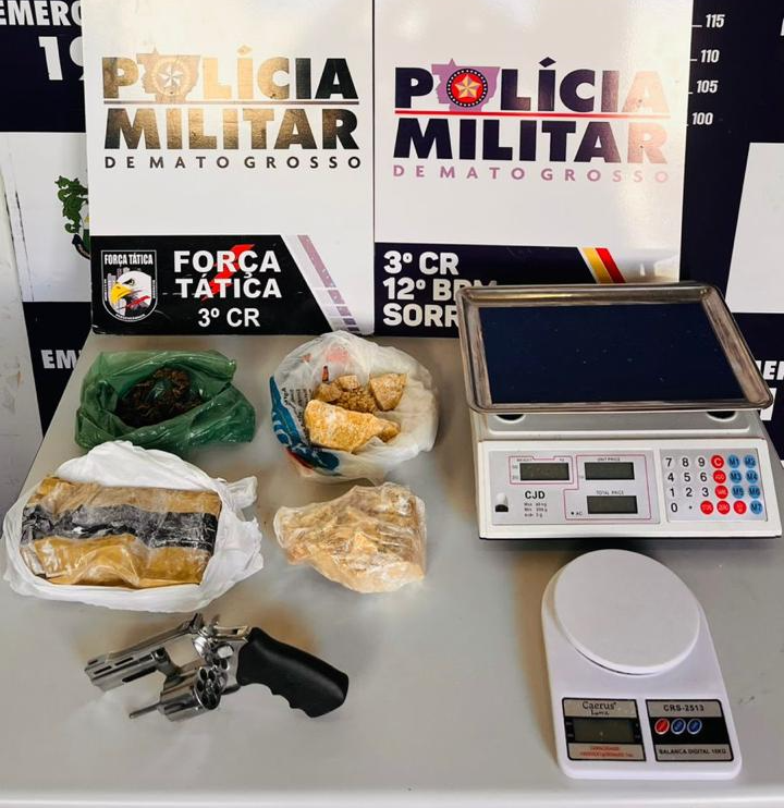 Uma ação da Polícia Militar de Mato Grosso, por meio da Força Tática do 3º Comando Regional, resultou na prisão de um jovem de 20 anos e na apreensão de arma de fogo, munições e aproximadamente 1,4 quilo de entorpecentes, nesta quinta-feira (12), no município de Sorriso.