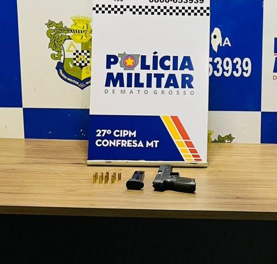O homem informou que estava hospedado em um hotel no município. No quarto indicado, os policiais encontraram uma arma de fogo municiada e carregada. O suspeito foi conduzido à delegacia para registro do boletim de ocorrência e demais providências cabíveis.