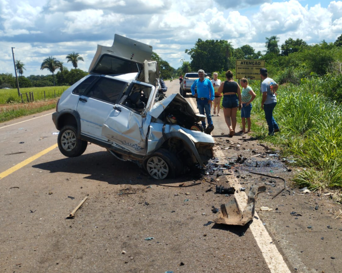 Um grave acidente foi registrado no início da tarde desta segunda-feira (1º), na MT-250, região rural entre Mirassol d’Oeste e Curvelândia. A colisão frontal entre um Fiat Uno e uma caminhonete Ford Ranger resultou na morte de Luiz Guilherme da Silva Santos, 22 anos, que ficou preso às ferragens.