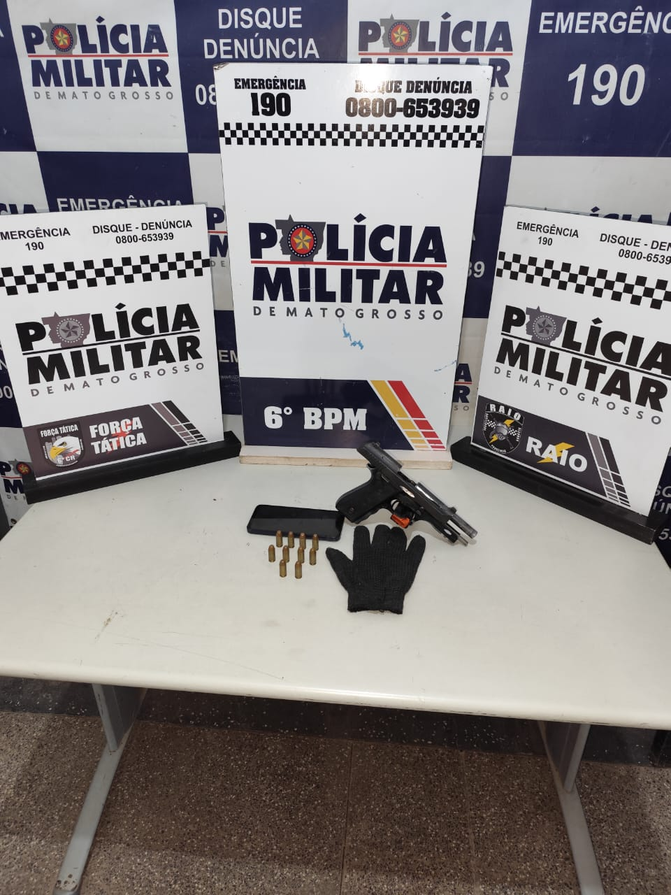 Os policiais apreenderam uma pistola Taurus, modelo PT 100, calibre .40, com numeração suprimida, acompanhada de um carregador e dez munições intactas, além de um veículo Fiat Palio de cor vermelha, um aparelho celular e comprovantes de pagamento, materiais que foram encaminhados à Delegacia de Polícia Civil de Cáceres para as providências cabíveis.