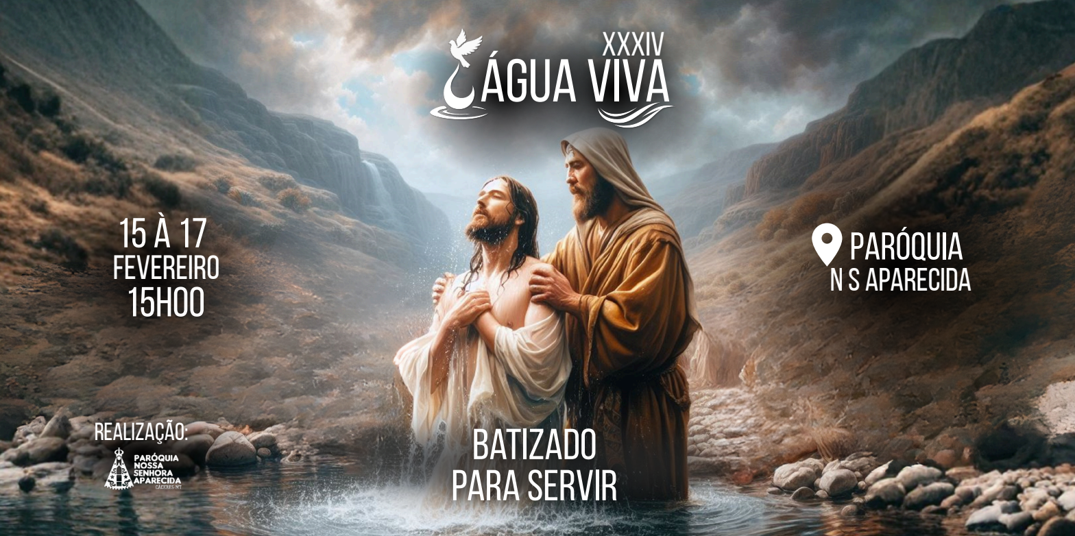 A Paróquia Nossa Senhora Aparecida promove, nos dias 15, 16 e 17 de fevereiro, a 34ª edição do Encontro de Oração Água Viva, tradicional evento realizado durante o período de Carnaval em Cáceres. As atividades terão início sempre às 15h, no campo em frente à Igreja Matriz.